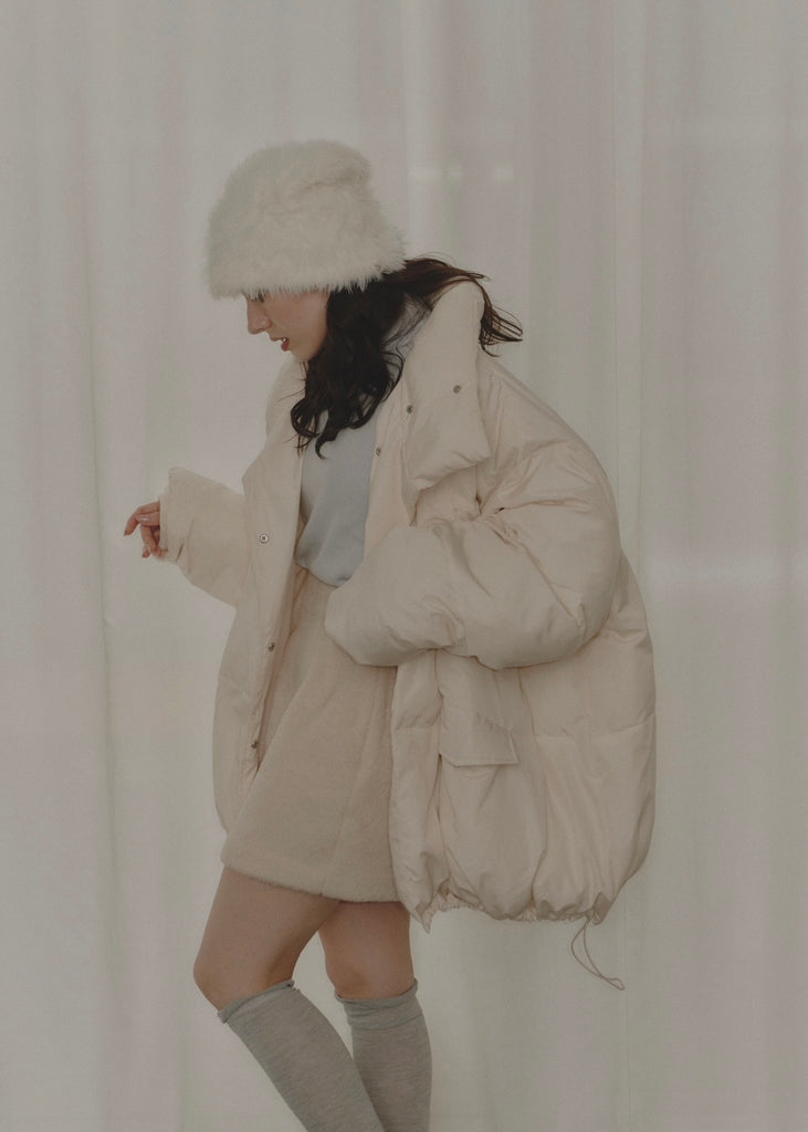 ふわっと軽い、コクーンシルエットのダウンジャケット。